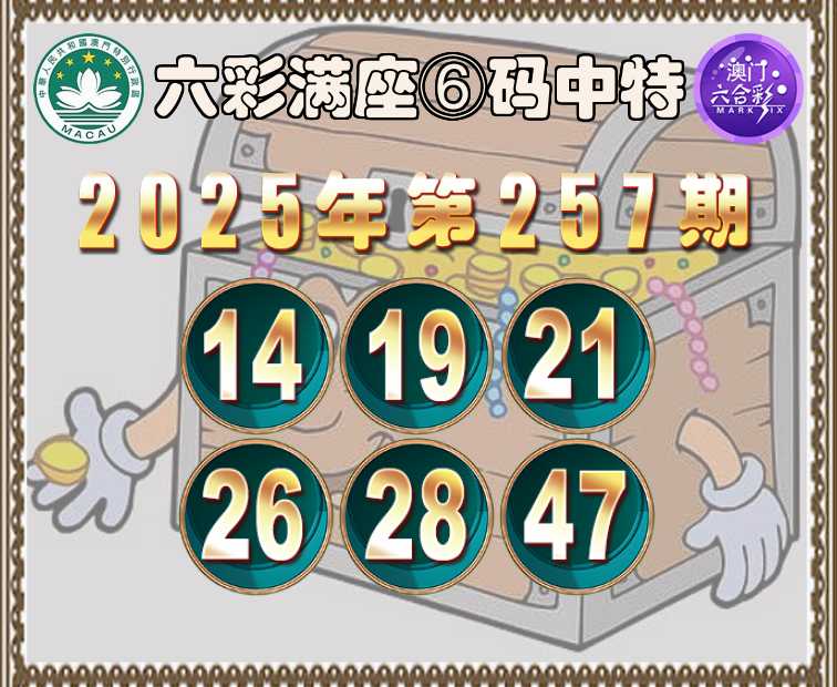 257期:〖六彩满座〗 🐓⑥码中特🐓【14.19.21.26.28.47】开:28准实力见证