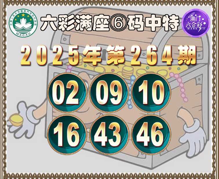 264期:〖六彩满座〗 🐓⑥码中特🐓【02.09.10.16.43.46】开:43准实力见证