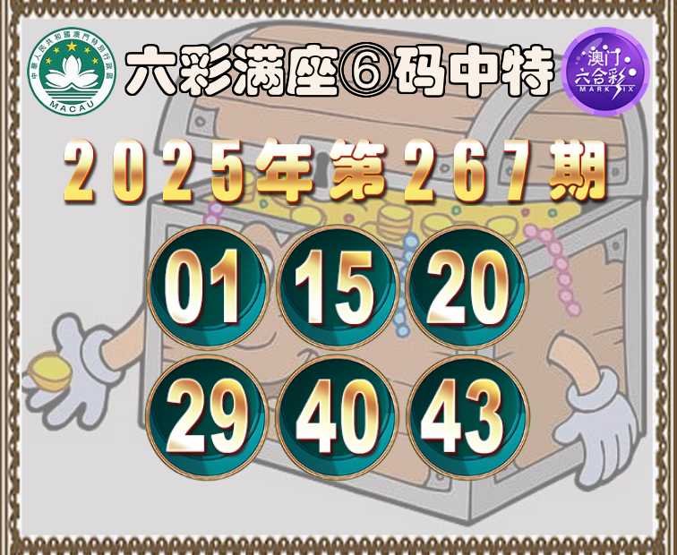 267期:〖六彩满座〗 🐓⑥码中特🐓【01.15.20.29.40.43】开:29准实力见证