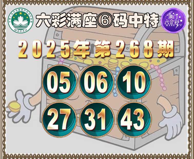 268期:〖六彩满座〗 🐓⑥码中特🐓【05.06.10.27.31.43】开:10准实力见证