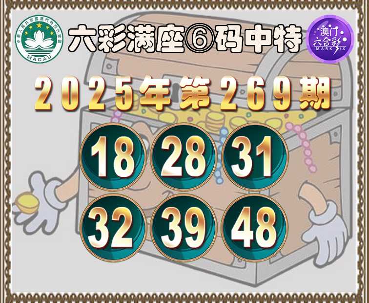 269期:〖六彩满座〗 🐓⑥码中特🐓【18.28.31.32.39.48】开:31准实力见证