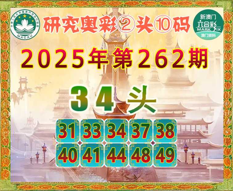 262期:《研究奥彩》 ☝️②头⑩码☝️【34头】开:44准实力见证