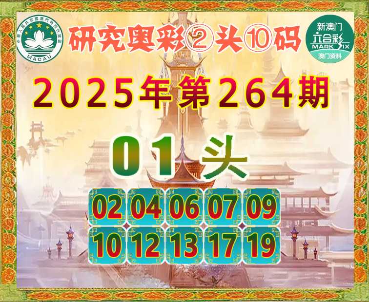 264期:《研究奥彩》 ☝️②头⑩码☝️【01头】开:43错