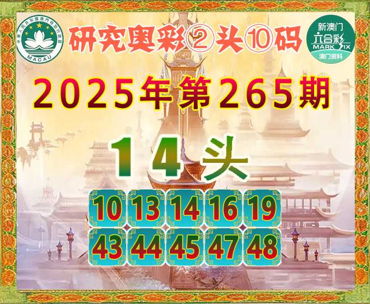 265期:《研究奥彩》 ☝️②头⑩码☝️【14头】开:10准实力见证