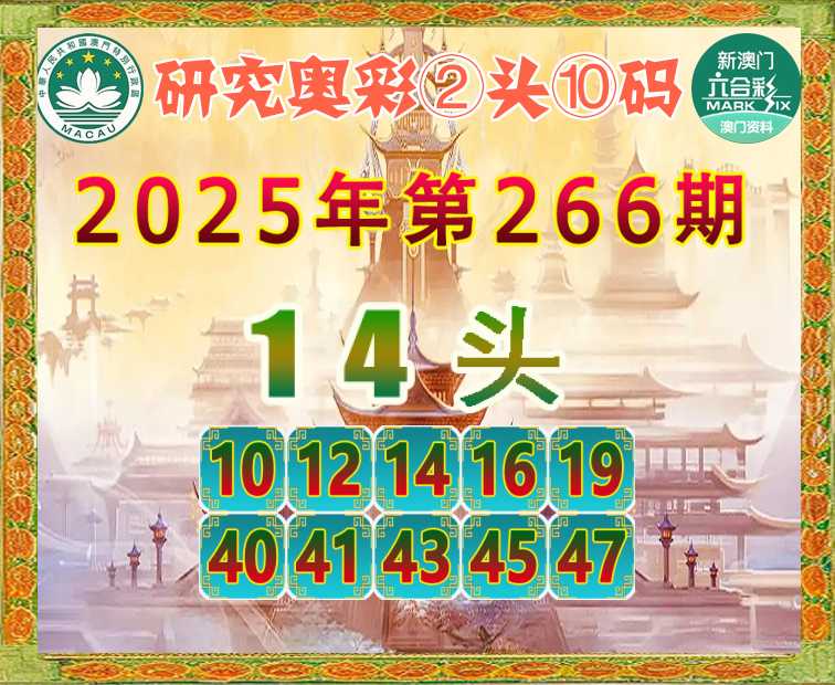 266期:《研究奥彩》 ☝️②头⑩码☝️【14头】开:41准实力见证