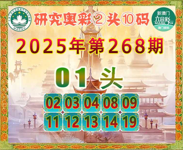 268期:《研究奥彩》 ☝️②头⑩码☝️【01头】开:10准实力见证