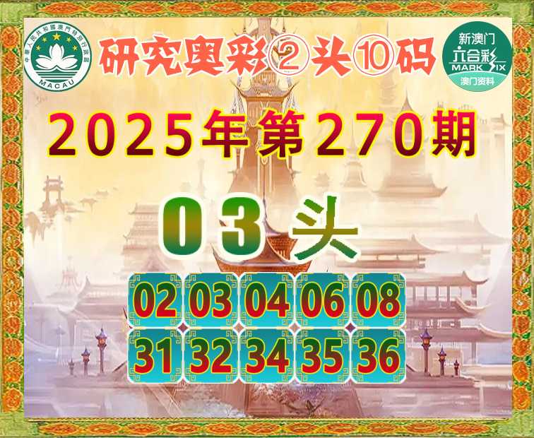 270期:《研究奥彩》 ☝️②头⑩码☝️【03头】开:35准实力见证