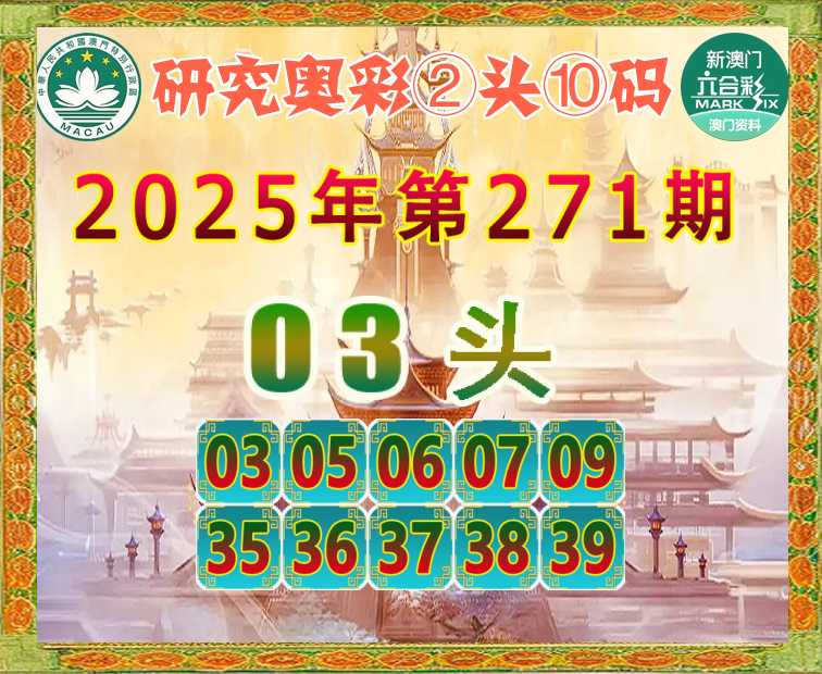 271期:《研究奥彩》 ☝️②头⑩码☝️【03头】开:06准实力见证