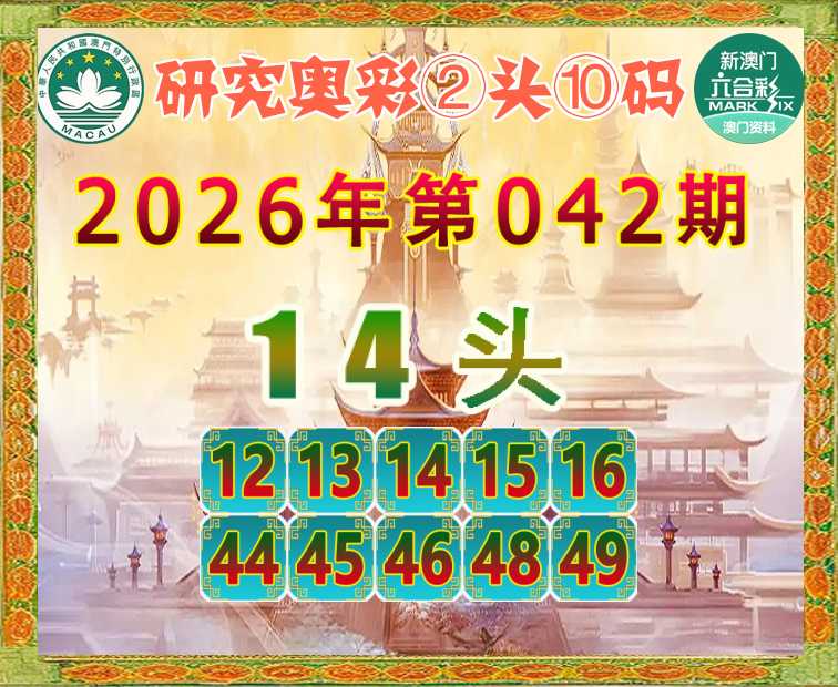 042期:《研究奥彩》 ☝️②头⑩码☝️【14头】开:16准实力见证