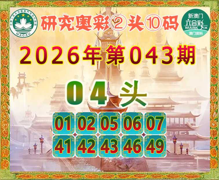 046期:《研究奥彩》 ☝️②头⑩码☝️【04头】开:03准实力见证