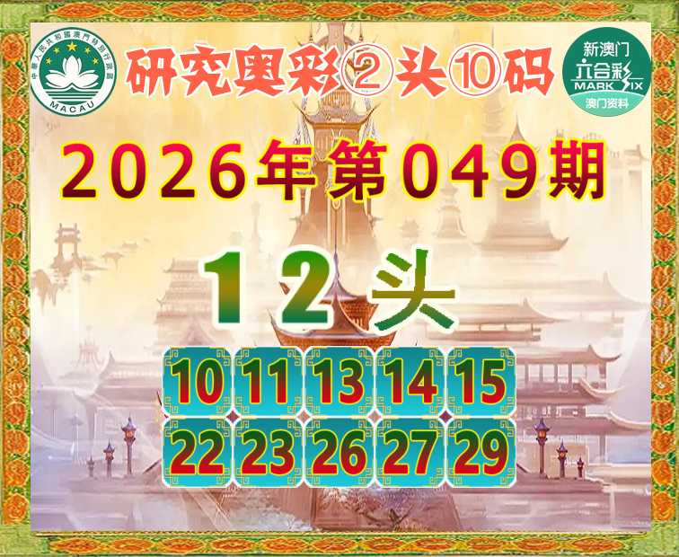 049期:《研究奥彩》 ☝️②头⑩码☝️【12头】开:13准实力见证