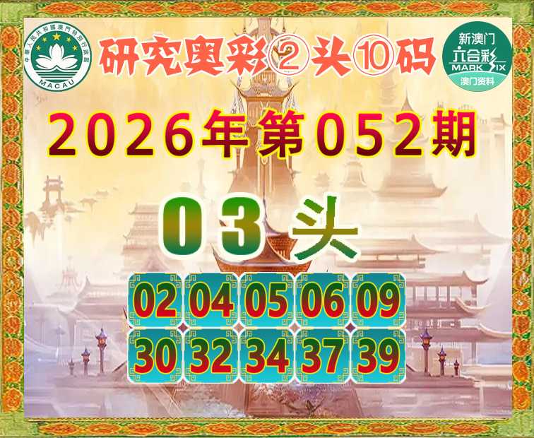 052期:《研究奥彩》 ☝️②头⑩码☝️【03头】开:38准实力见证