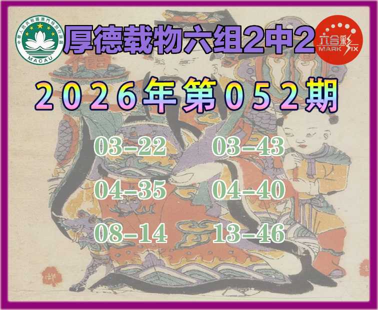 052期:《厚德载物》 🥓六组2中2🥓