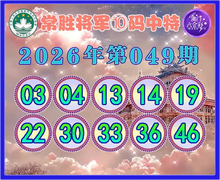 046期:〖常胜将军〗 ✂️⑩码中特✂️开:03准实力见证