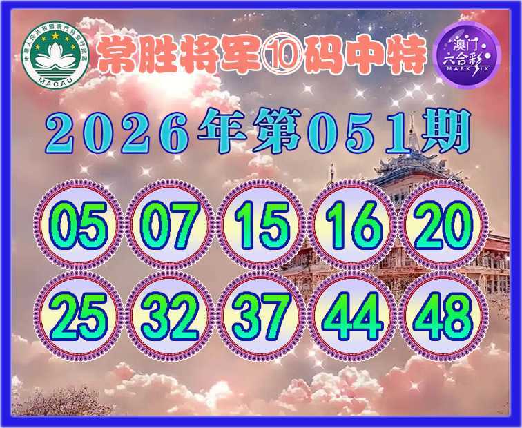 051期:〖常胜将军〗 ✂️⑩码中特✂️开:01错