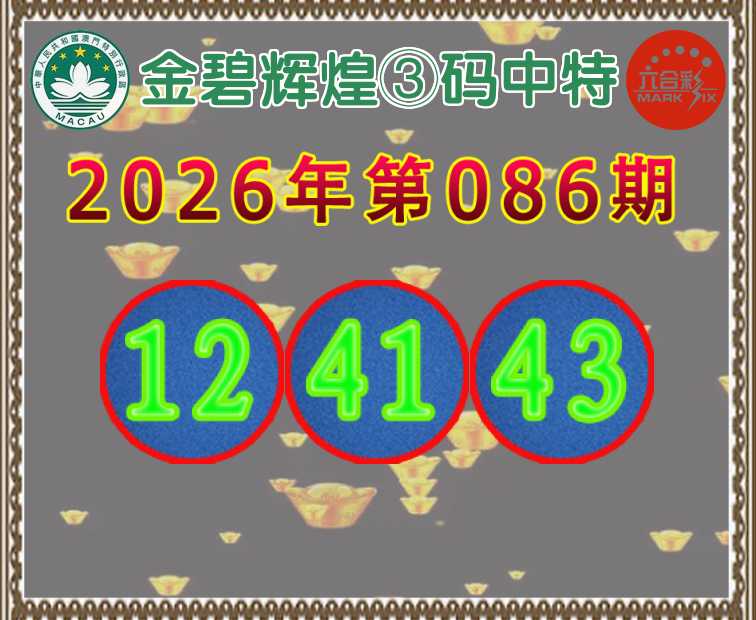 086期:【金碧辉煌】 🀄③码中特🀄【12.41.43】开:12准