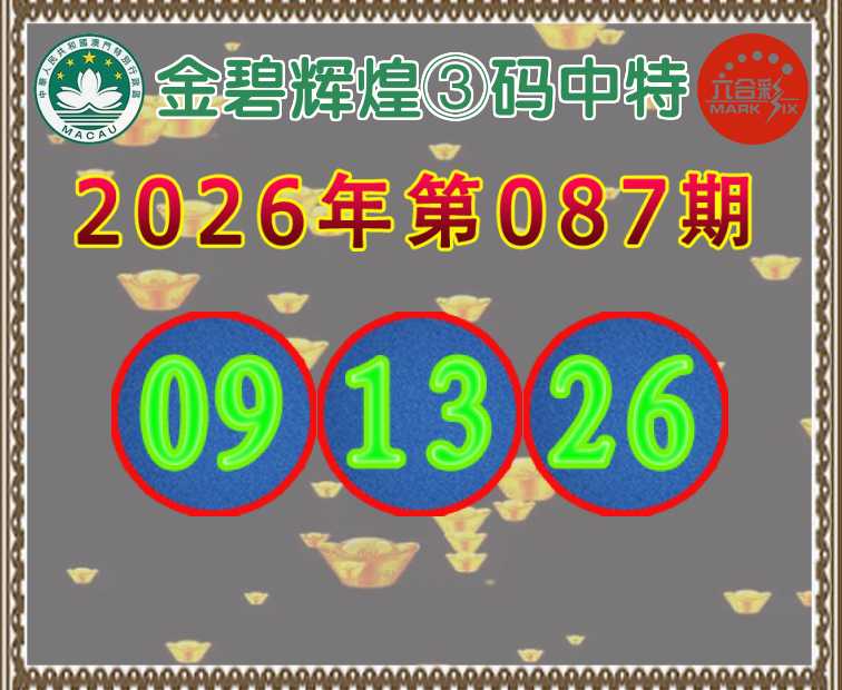 087期:【金碧辉煌】 🀄③码中特🀄【09.13.26】开:26准