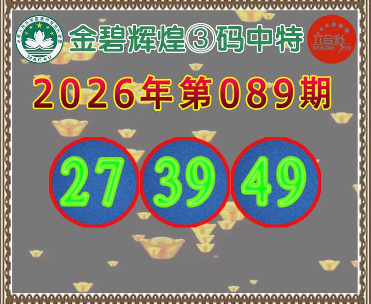 089期:【金碧辉煌】 🀄③码中特🀄【27.39.49】开:49准