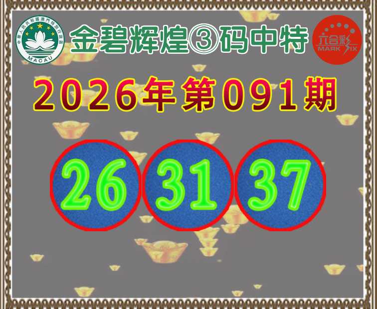 091期:【金碧辉煌】 🀄③码中特🀄【26.31.37】开:37准