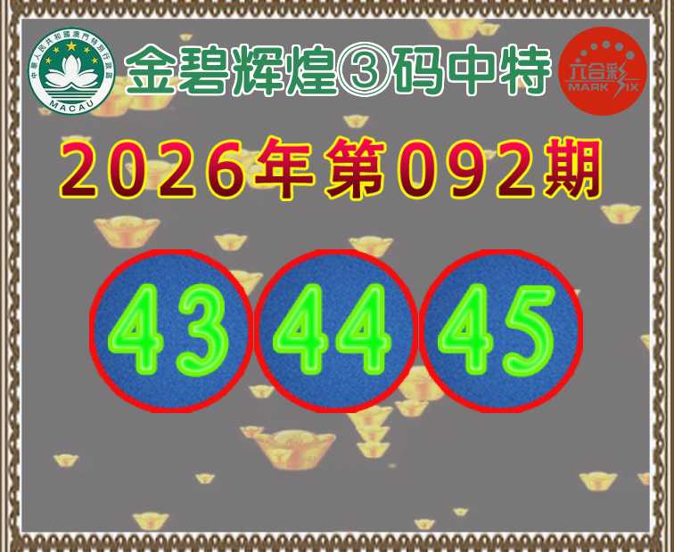092期:【金碧辉煌】 🀄③码中特🀄【43.44.45】开:06错