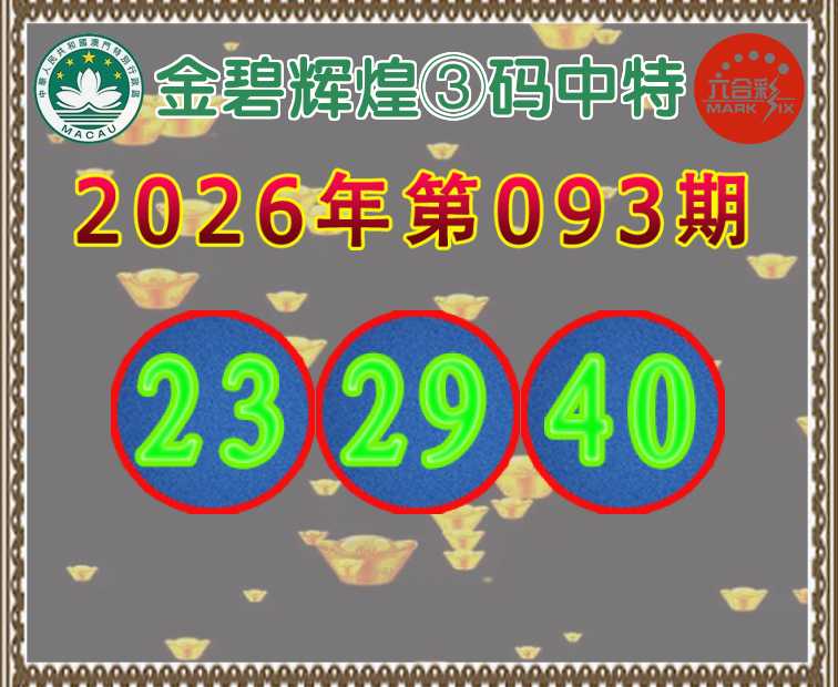 093期:【金碧辉煌】 🀄③码中特🀄【23.29.40】开:40准实力见证