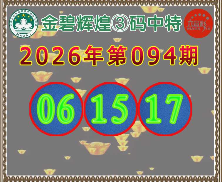 094期:【金碧辉煌】 🀄③码中特🀄【06.15.17】开:17准实力见证