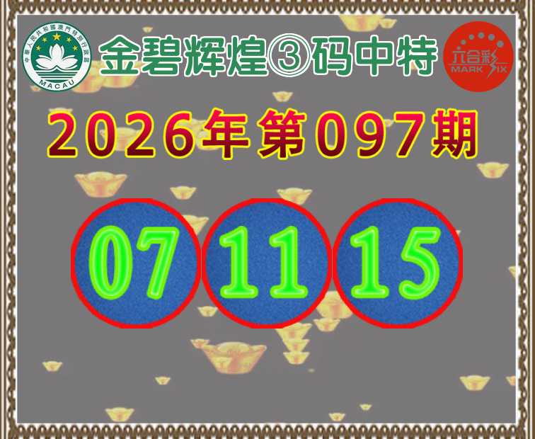 097期:【金碧辉煌】 🀄③码中特🀄【07.11.15】开:11准实力见证