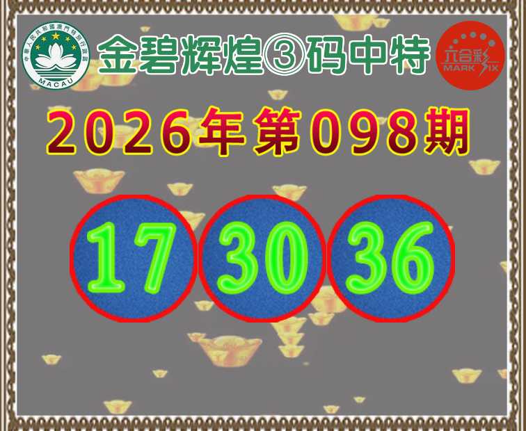 098期:【金碧辉煌】 🀄③码中特🀄【17.30.36】开:17准实力见证