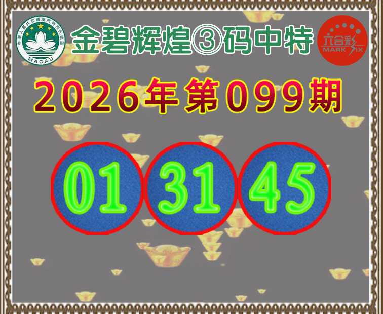 099期:【金碧辉煌】 🀄③码中特🀄【01.31.45】开:12错
